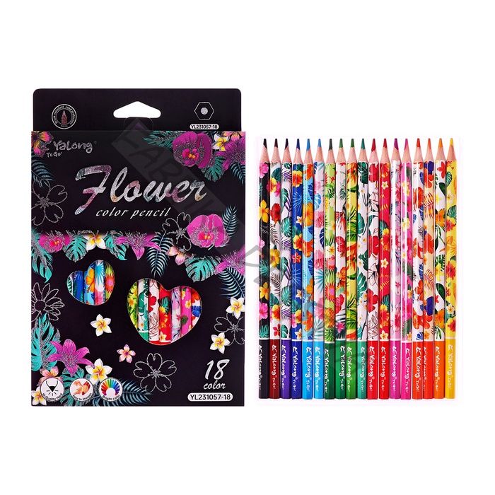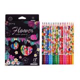 Карандаши 18 цветов, в картонной коробке, шестигранные, деревянные «Цветы на чёрном», МИКС