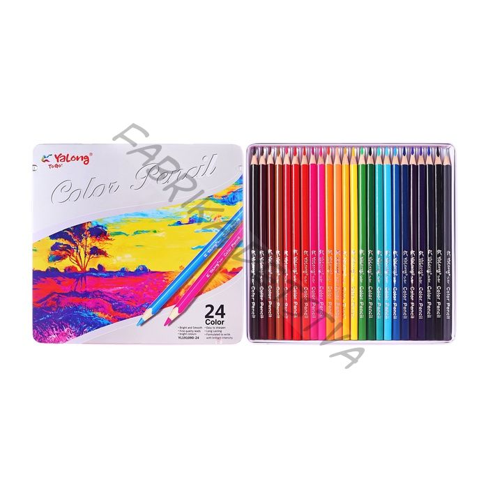Карандаши 24 цвета, треугольные, деревянные «Пейзаж», в металлическом пенале, МИКС