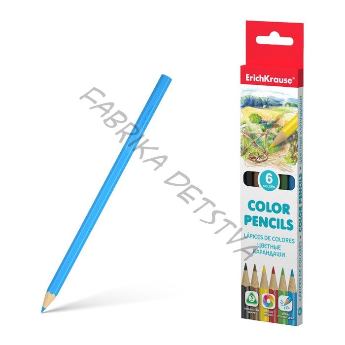 Карандаши 6 цветов ErichKrause Standart, дерево, трехгранные, 3.0 мм грифель, картонная упаковка, европодвес