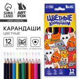 Карандаши цветные, 12 цветов, трехгранные «Котики»