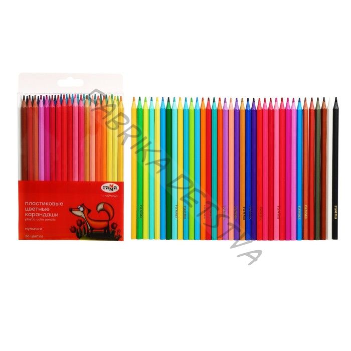 Карандаши цветные пластиковые 36 цветов «Гамма. Мультики», заточенные, ПВХ, европодвес (251220214)