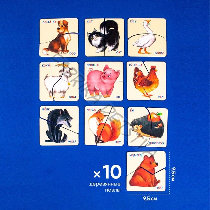 «Картинки-половинки» — это пазлы, с которыми справятся даже малыши. Покажите ребёнку как из двух частей появляется одно целое, и он обязательно научится их собирать. Особенности В наборе 10 картинок. Размер собранной картинки: 9,5 x 9,5 см. На картинках написаны названия животных на русском и английском языках. В комплекте есть коробка, в которой удобно хранить картинки-половинки. Картинки-половинки с раннего возраста знакомят ребёнка с окружающим миром и развивают у него мелкую моторику, образное мышление, внимание, умение воспринимать связь между частью и целым.
