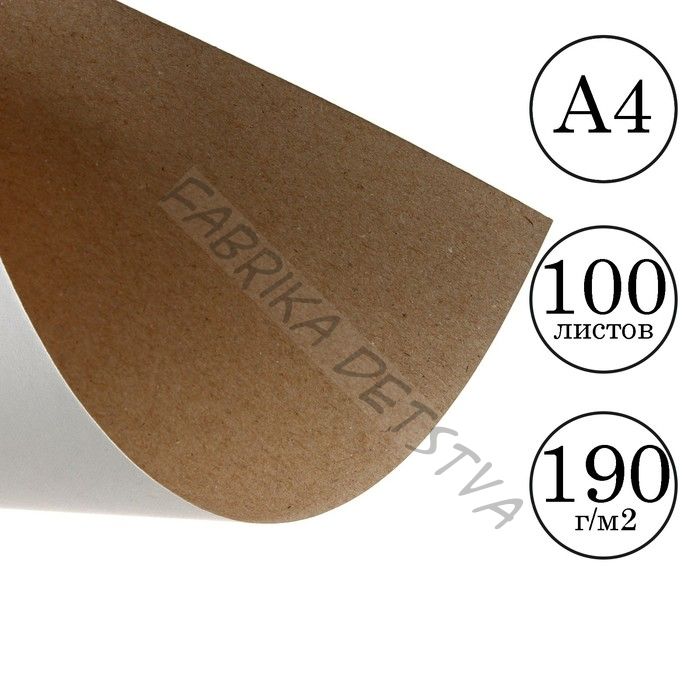 Картон белый А4, 100 листов, немелованный, 190 г/м2, односторонний