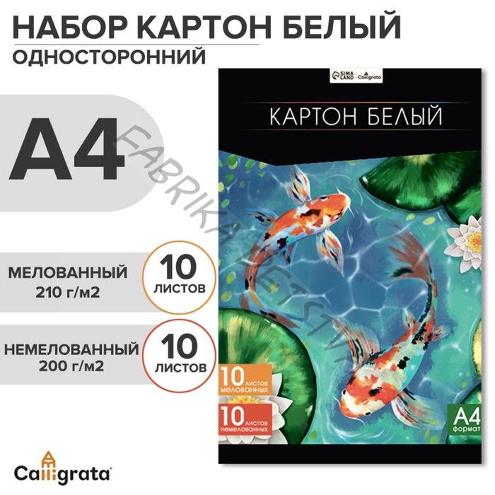 Картон белый А4, 20 листов: 10 листов мелованного плотность 200 г/м2, 10 листов немелованного плотность 200 г/м2, в папке