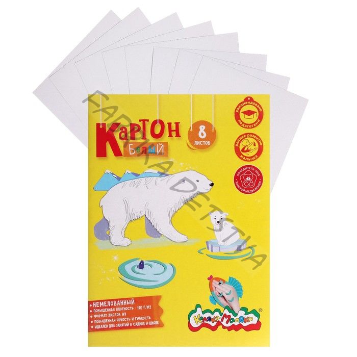 Картон белый А4, 8 листов «Каляка-Маляка», немелованный
