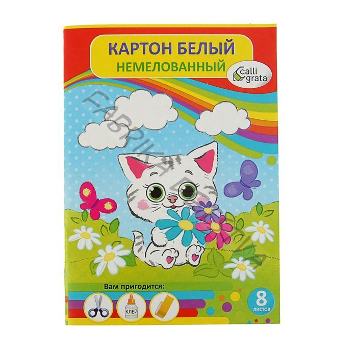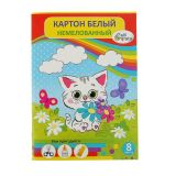 Картон белый А4, 8 листов "Котёнок с цветами", немелованный, плотность 220 г/м2