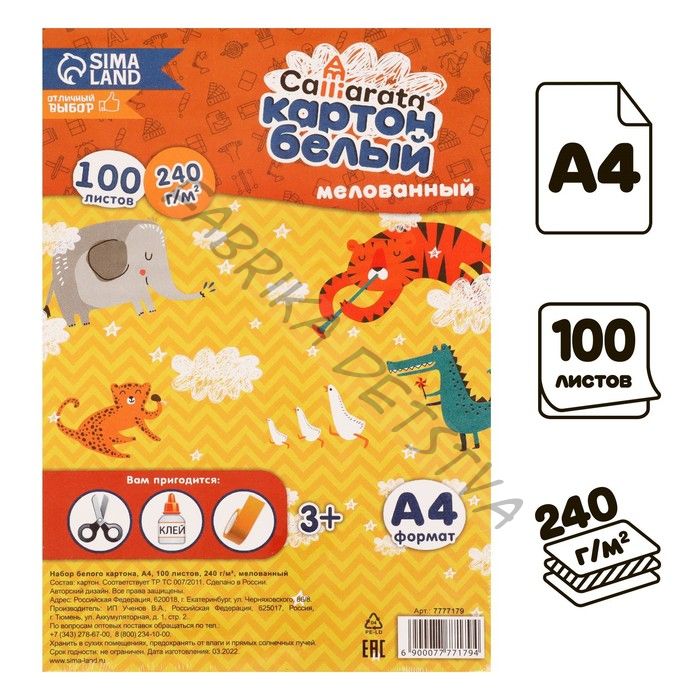 Картон белый А4 Calligrata, 100 листов, 240 г/м2, мелованный, односторонний, в т/у пленке