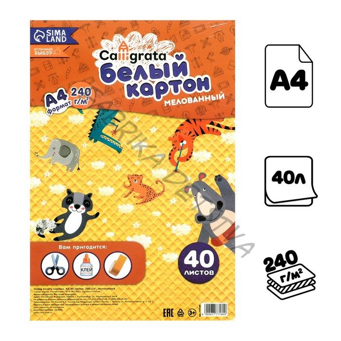Картон белый А4 Calligrata, 40 листов, 240 г/м2, мелованный, односторонний, в т/у пленке
