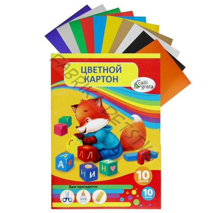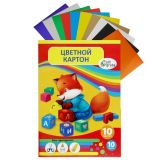 Картон цветной А4, 10 листов, 10 цветов «Игрушки», 230 г/м2 , золото + серебро