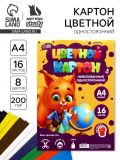 Картон цветной А4 16 л 8 цв немелованный 200 г односторонний