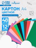 Картон цветной Calligrata, А4, 48 листов, 12 цветов, двусторонний, тонированный в массе