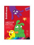 Картон цветной ErichKrause. Jolly Friends, А4, 10 цветов, 10 листов, мелованный, односторонний, глянцевый, на склейке
