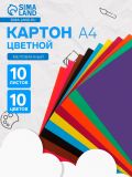 Картон цветной двухсторонний А4, 10 листов, 10 цветов Мульти-Пульти, мелованный