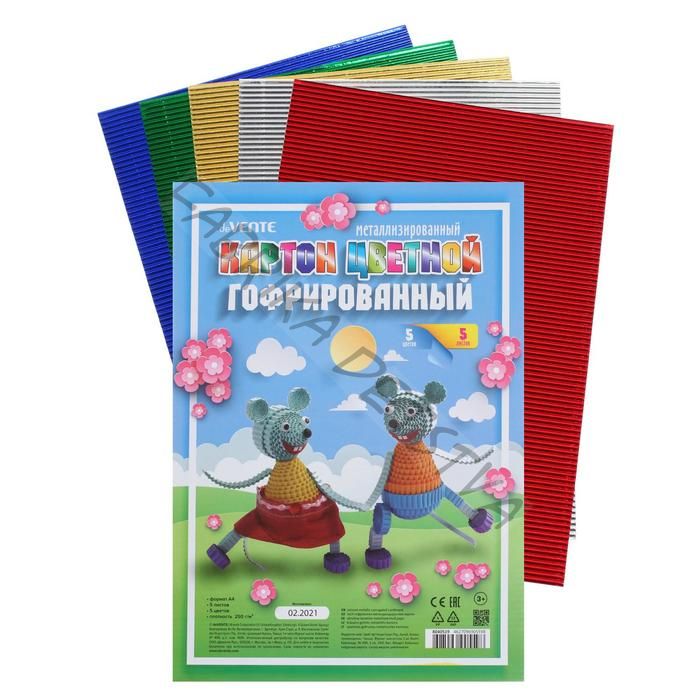 Картон цветной гофрированный металлизированный А4, 5 листов х 5 цветов, deVENTE, 250 г/м2