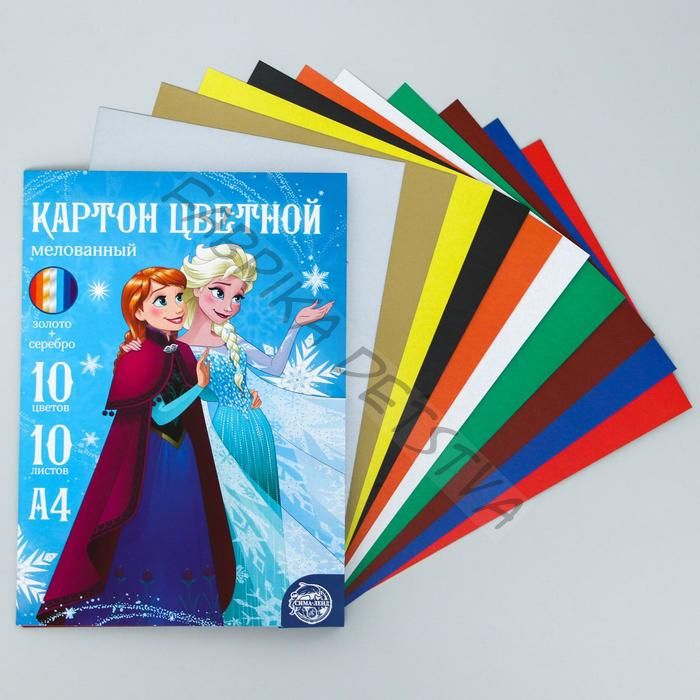 Картон цветной мелованный «Эльза и Анна», А4, 10 л,. 10 цв., (2 л. золото + серебро), Холодное сердце, 240 г/м2
