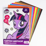 Картон цветной немелованный, А4, 8 л. 8 цв., My little pony (серебро золото)