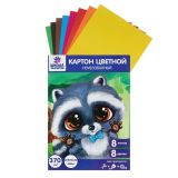 Картон цветной немелованный А4, 8 листов, 8 цветов, 370 г/м2