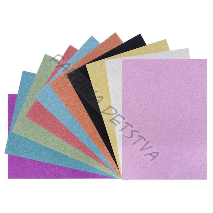 Картон цветной с блёстками А4, 10 листов, 10 цветов