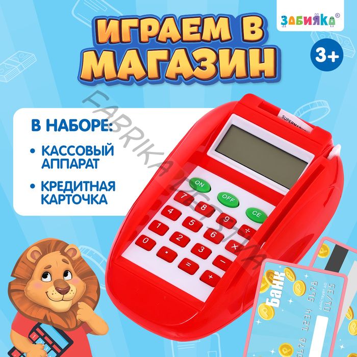 Касса-терминал «Играем в магазин» разработана для детей от 3 лет. Игрушка развлечёт ребёнка и поможет освоить новые навыки! Ребёнок в игровой форме познакомится с профессией продавца и потренирует навыки счёта. Особенности игрушки В комплекте касса-калькулятор и банковская карточка. Ребёнок сможет считать суммы покупок на калькуляторе. Касса выдаёт чек при проведении банковской картой. Игрушка издаёт звуки настоящей кассы. Размер кассы-калькулятора: 10 x 4 x 15,5 см. Размер карточки: 8 x 0,2 x 5 см. Для работы необходимы 2 батарейки типоразмера AA. Батарейки в комплект не входят.
