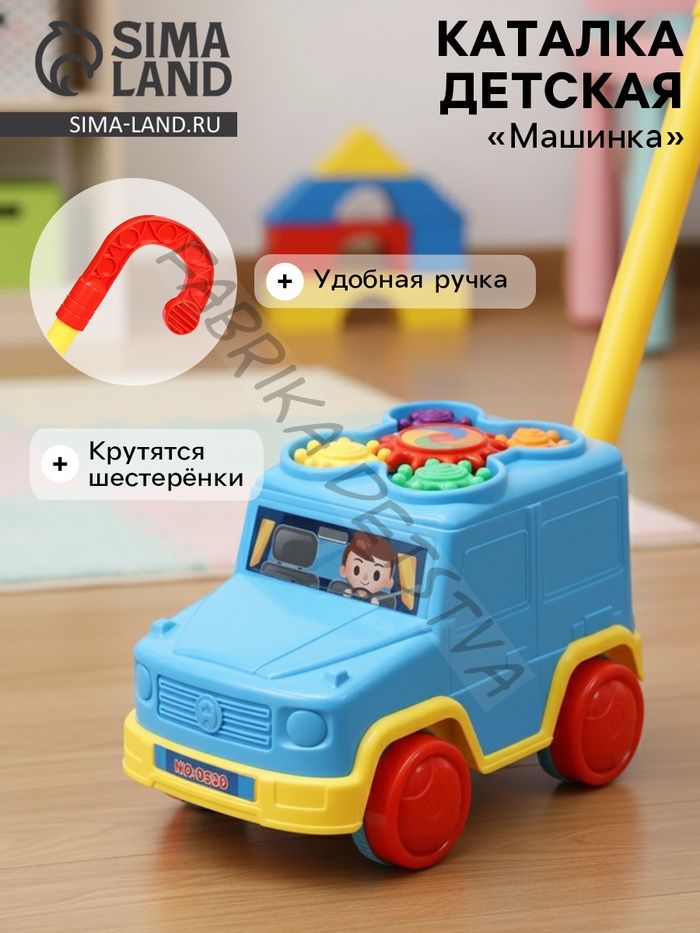 Каталка детская на палочке «Машинка», с шестерёнками и ручкой