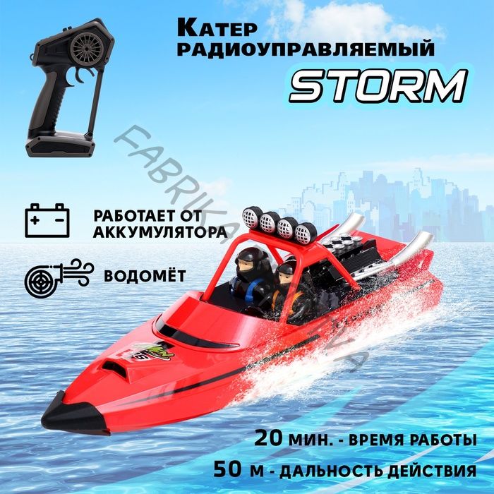Вперед к новым водным приключениям с радиоуправляемым катером STORM! Этот быстрый и мощный катер — идеальный выбор для тех, кто любит скорость, веселье и яркие эмоции. Удобное управление и классный дизайн подарят ребенку незабываемые моменты на воде! Особенности Мощный водомётный двигатель. Полная гидроизоляция, обеспечивающая защиту от воды. Система самовыравнивания: катер автоматически возвращается в рабочее положение при переворачивании. Время работы — до 20 минут. Радиус действия — 50 метров. Зарядка от USB-кабеля. Играем с пользой Развитие моторики и координации — управление катером стимулирует развитие ловкости и внимательности. Творческое воображение — дети смогут придумать собственные сценарии гонок и водных миссий. Активный отдых на свежем воздухе — радиоуправляемый катер идеально подходит для игр на природе или у бассейна. STORM — это не просто игрушка, это настоящее приключение, которое ждет вашего маленького героя!