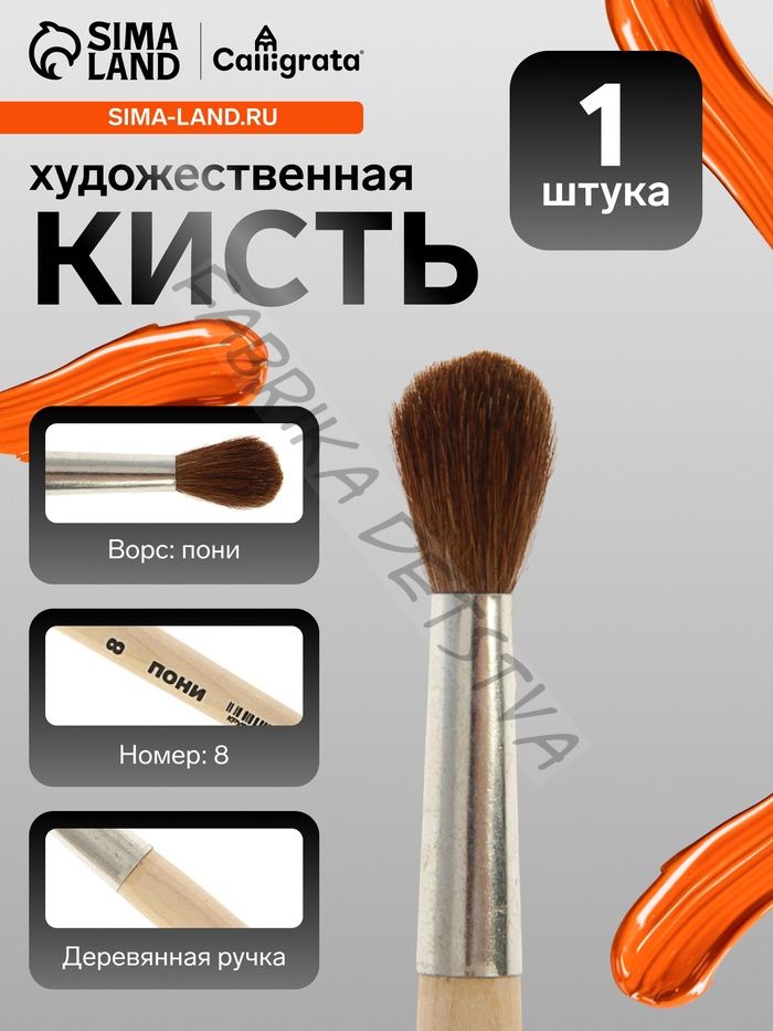 Кисть для рисования, пони, № 8, Calligrata, круглая, деревянная ручка