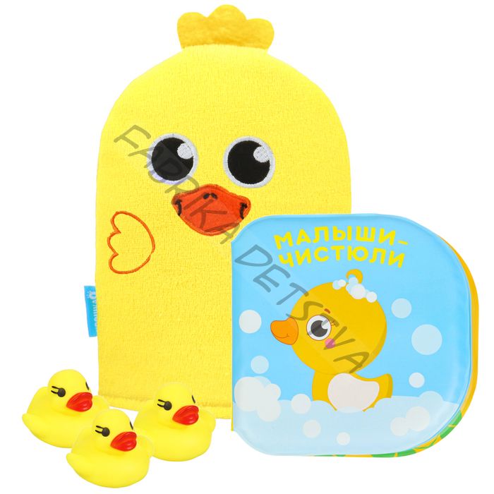 Книжка для ванны для купания с игрушками и мочалкой «Утята», набор для купания