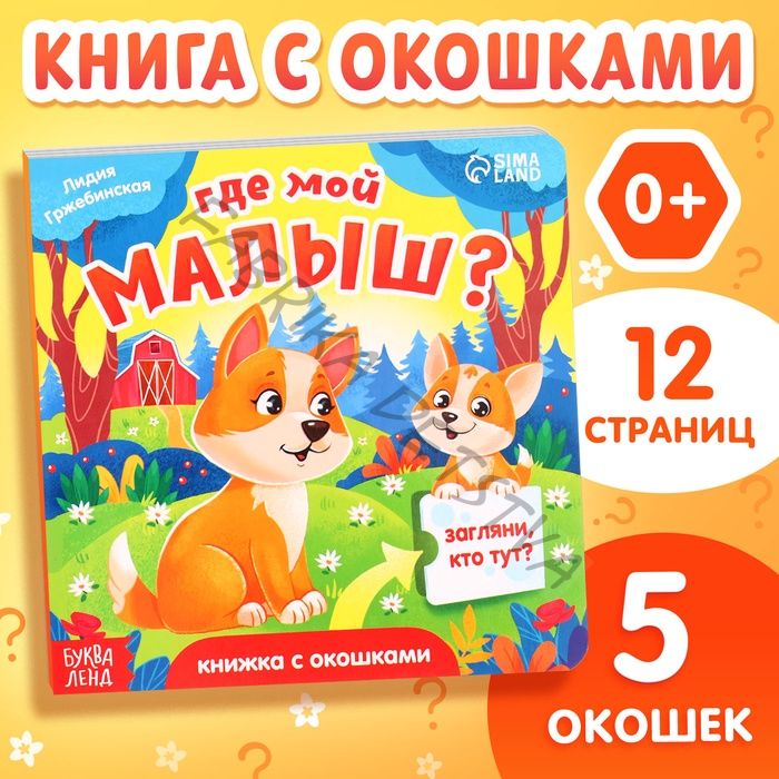 Книжка картонная с окошками «Где мой малыш?», 12 стр.