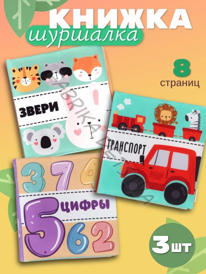 Книжка - шуршалка для малышей «Первые знания №1», набор 3 шт., 11x11.5 см, от 3 мес.