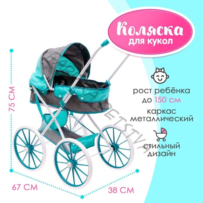 Представляем вашему вниманию универсальную коляску для кукол «Прогулка» – идеальный выбор для маленьких заботливых мам. Эта коляска станет незаменимым спутником в играх и прогулках. Особенности Коляска подходит для детей ростом до 150 см. Благодаря удобной перекидной ручке, малыш сможет катать куклу лицом к себе или от себя. Подойдёт для кукол до 47 см. Металлический каркас обеспечивает надежность конструкции, а мягкие ткани и материал колес EVA гарантируют комфорт для куклы. Коляска легко складывается, что позволяет удобно хранить ее и брать с собой на прогулку или в гости. Вместительная корзина для мелочей позволит взять с собой все необходимые аксессуары для куклы, а складной капюшон защитит от солнца и ветра. Коляска выполнена в современном дизайне, который придется по вкусу каждой маленькой моднице. Коляска для кукол «Прогулка» станет отличным подарком для девочки, которая любит играть в дочки-матери. Она поможет развить воображение, мелкую моторику и чувство ответственности. Коляска также может стать прекрасным дополнением к коллекции игрушек или использоваться в качестве декоративного элемента в детской комнате.