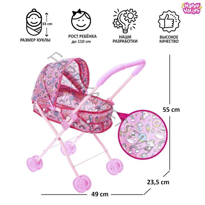 Коляска для кукол «Сладкая поняшка» универсальная, металлический каркас