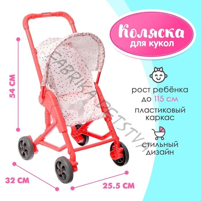 Коляска для кукол «Весёлая прогулка», летняя, 32 x 25,5 x 54 см