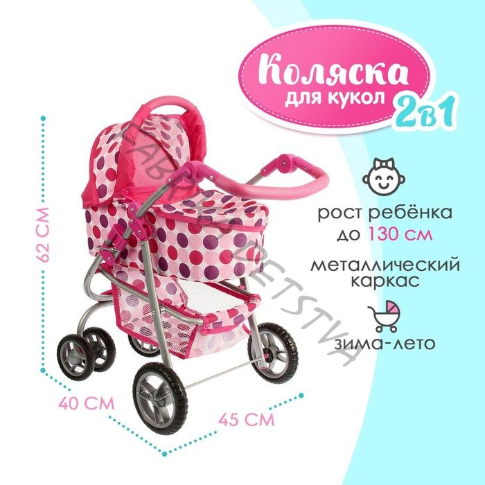Коляска для кукол зима-лето 2 в 1, регулирует ручка, металлический каркас