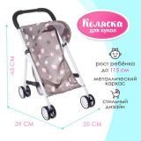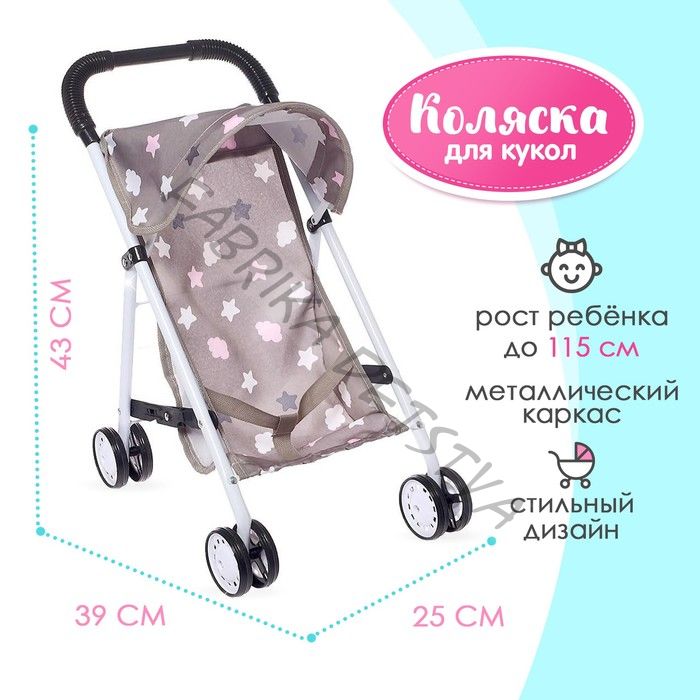 Катая куколок в коляске, маленькие леди учатся заботе и ответственности, при этом у них развивается воображение и эмоциональное восприятие. Особенности коляски С летней коляской удобно брать пупсов с собой на прогулку и в поездку. Каркас сделан из лёгкого металла, крепления и колёсики — из пластика, спинка и сиденье — из текстиля. Коляска компактно складывается. В таком виде её удобно хранить. Капюшон опускается и поднимается. Подходит для куколок размером до 30 см.