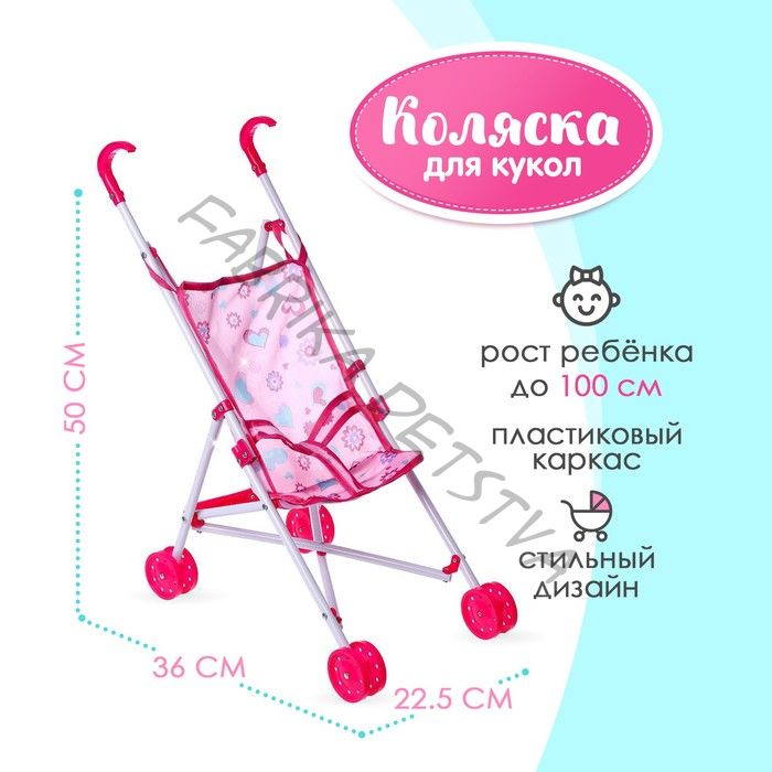 Игра с коляской-тростью разовьёт воображение, эмоциональное восприятие и чувство ответственности! Стильное яркое изделие привлечёт внимание малыша. Ребёнок с удовольствием будет катать свои игрушки, укладывать пупсов в коляску и выходить на прогулку. Модель подходит для игр дома и на улице. Размер коляски: 36 x 22,5 x 50 см. Каркас выполнен из пластика. Товар предназначен для детей от 3 лет.