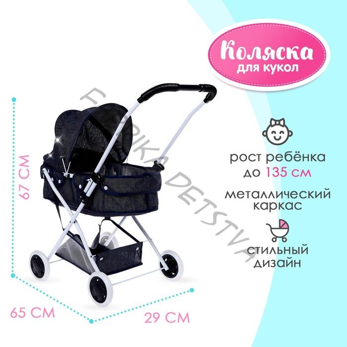 Коляску для куклы можно назвать одной из самых любимых игрушек для девочек. Маленькие леди с раннего детства проявляют интерес к сюжетно-ролевым играм, в процессе которых они интуитивно повторяют действия своих родителей. Особенности коляски Каркас выполнен из металла. Люлька съёмная, выполнена из ткани. Подходит для кукол до 46 см. Размер коляски: 65 x 29 x 67 см. Ручка не регулируется. Подходит для детей ростом до 135 см. Складной капюшон. Функции качания нет. Коляска складывается и занимает мало места. Корзина в комплекте будет служить местом хранения для всех необходимых вещей ребёнка и его пупса. Малыш может катать своих пупсов, кукол и мягких игрушек в любое время года, даже зимой. Пометка «МИКС» означает, что у вас в заказе окажется коляска любого вида. А если заказываете несколько таких наборов, то в заказе могут оказаться как все одинаковые игрушки, так и все разные. Играть в куклы — полезно Для девочек это не только развлечение, но и развитие материнских навыков, ведь так интересно заботиться о маленьком человечке, кормить его с ложечки, пеленать и просто гулять. Именно по этим причинам коляска для куклы не просто полезна, но и необходима, чтобы разнообразить досуг ребёнка.