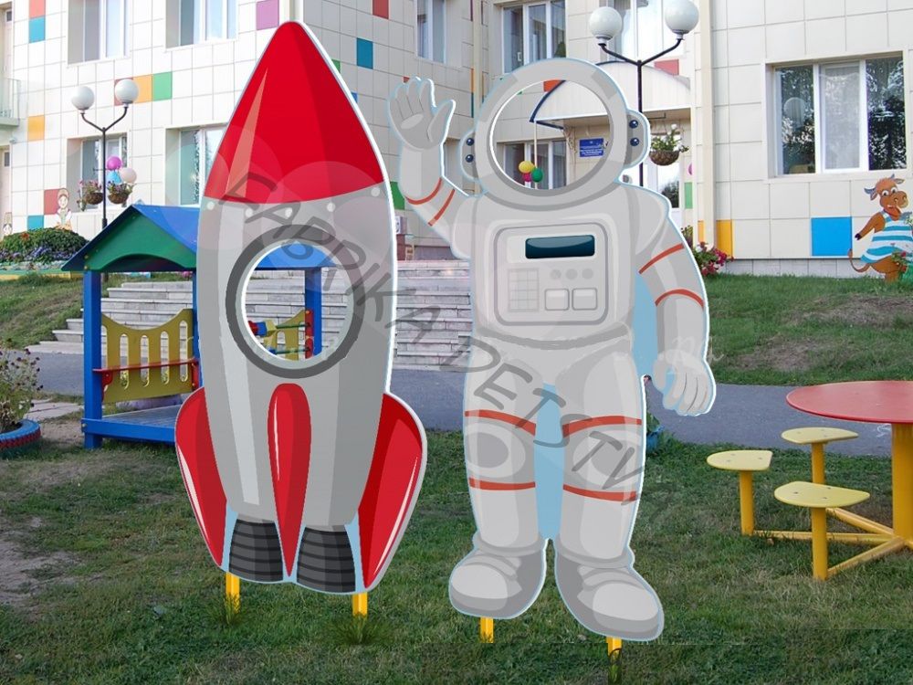 Композиция уличных фигур "Ракета и космонавт" выполнена из ПВХ с нанесением полноцветного рисунка, покрытого защитной пленкой. Используемые материалы безопасны и устойчивы к атмосферным воздействиям, а конструкция гарантирует долговременное использование.