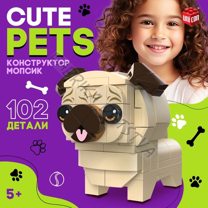 Конструктор Cute pets, Мопсик, 102 детали