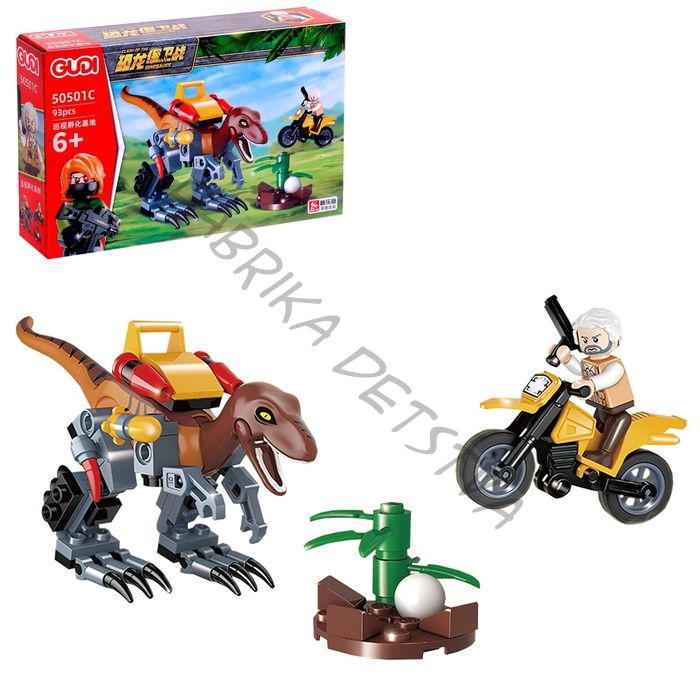 Конструктор Дино «Мотоциклист против динозавра», 93 детали