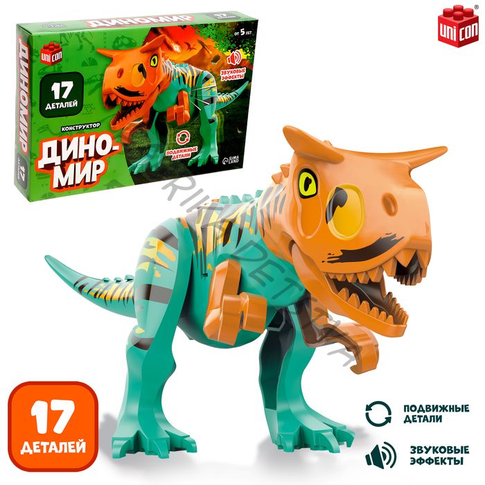 Конструктор «Диномир», 17 деталей, велоцираптор, звуковые эффекты