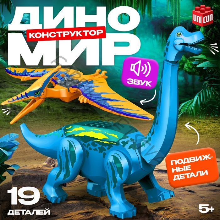 Конструктор «Диномир», 19 деталей, бронтозавр и птеранодон, звук