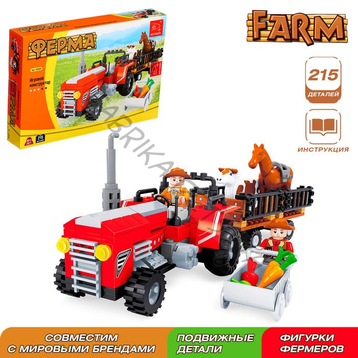 Конструктор Ферма «Трактор с животными», 215 деталей