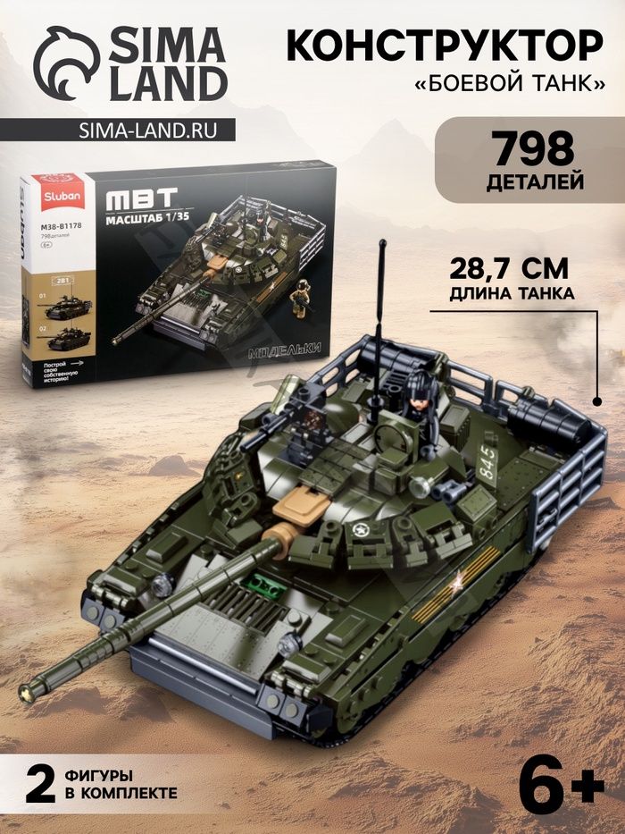Конструктор «Модельки. Боевой танк», 2 варианта сборки, 798 деталей, с фигурками