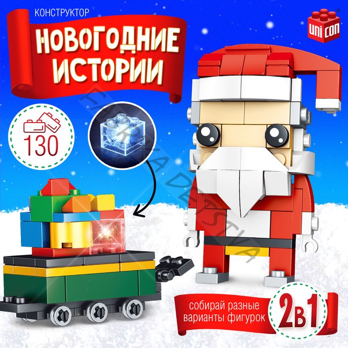 Конструктор «Новогодние истории. Дед Мороз с тележкой», 130 деталей