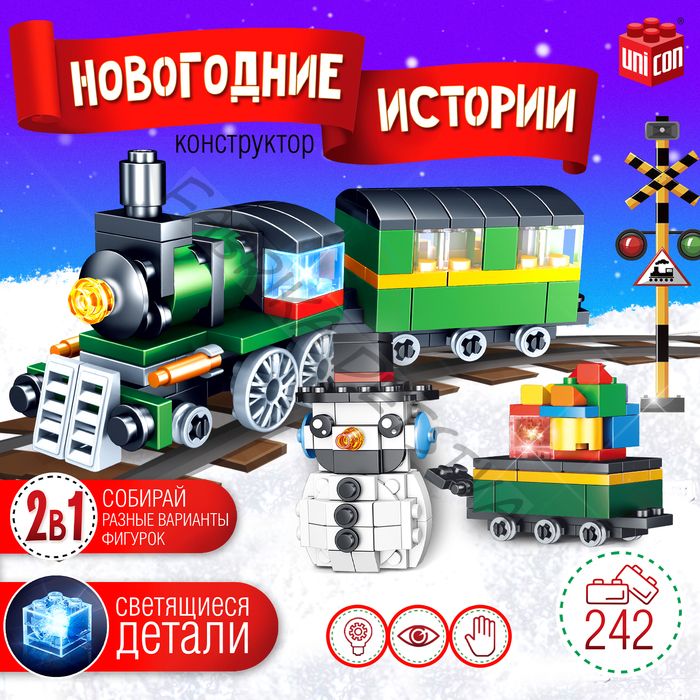 Конструктор «Новогодние истории. Поезд и снеговик», 242 детали