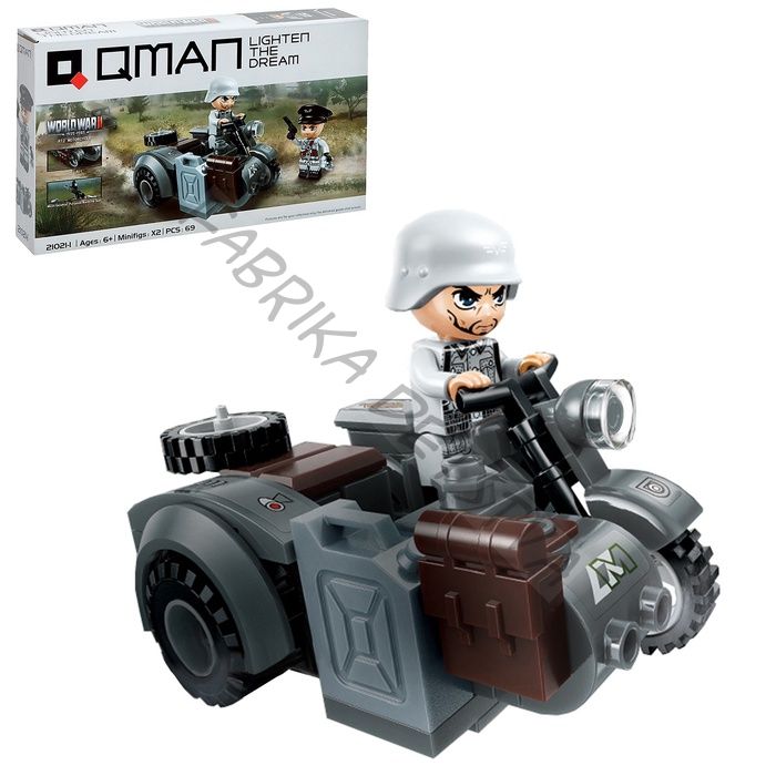 Конструктор блочный Вторая мировая война «Военный мотоцикл», 69 деталей