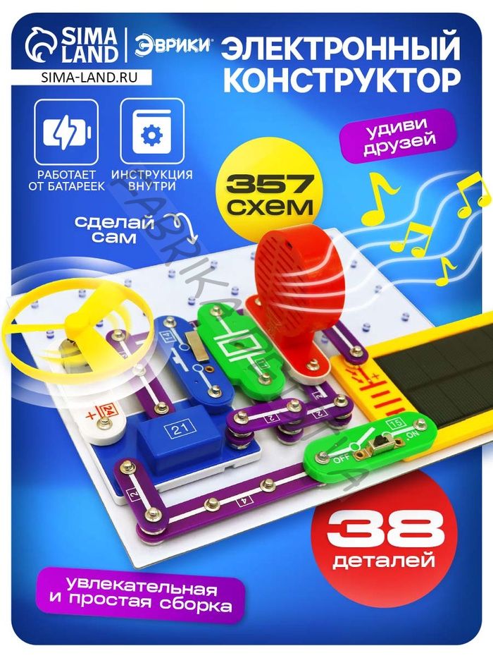 Конструктор электронный «Эврики», 357 схем, 38 элементов, работает от батареек