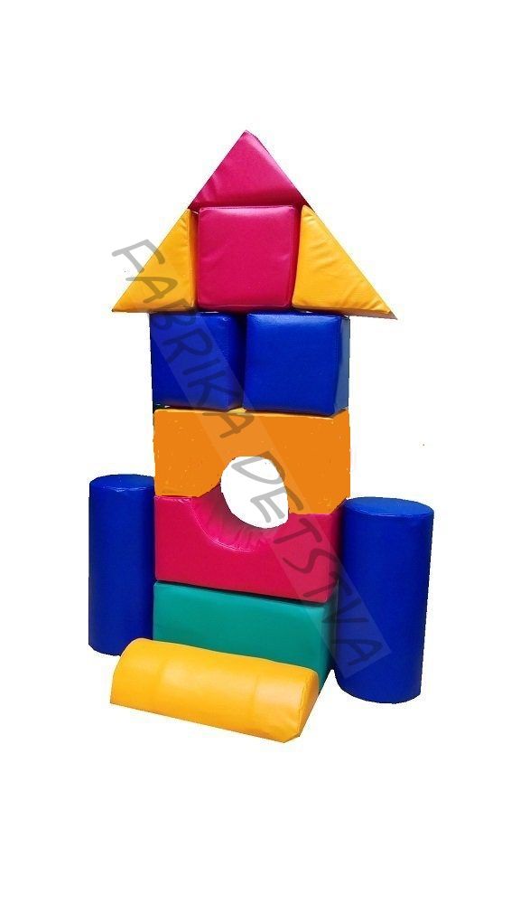 Арка прямоугольная – 40х20х20 – 2 шт. брус – 40х20х20 – 1 шт. треугольник – 20х20 -3шт. цилиндр – Д20х40 – 2 шт. полуцилиндр – R10х40 – 2шт. куб – 20х20х20 – 3 шт