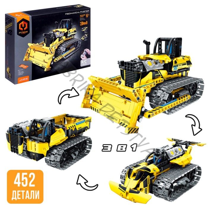 Конструктор радиоуправляемый «Строительный бульдозер», 3 варианта сборки, 452 детали
