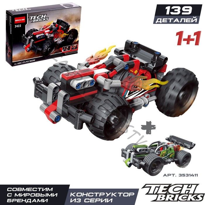 Конструктор с инерционным механизмом «Гоночный джип», 139 деталей